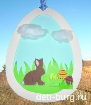 Вот пример детской аппликации к Пасхе «Цыпленок в скорлупе».