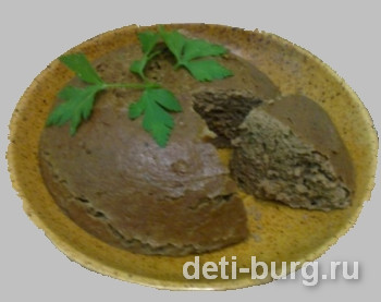 Ингредиенты: 50 г печени, 2 чайные ложки сухарей, кусочек масла величиной с лесной орех, ½ яйца, 50 г молока, несколько листочков петрушки или укропа.