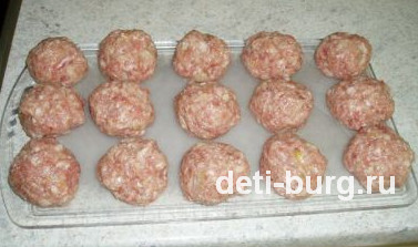 Формируем фрикадельки величиной с грецкий орех, и варим их на медленном огне минут 15.