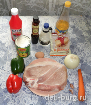 Для приготовления свинины в кисло-сладком соусе нам понадобиться: