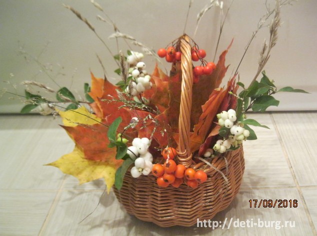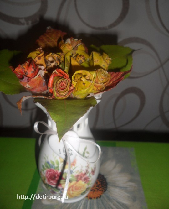 18. Поделка из листьев «Осенний букет» от Алисы Мясниковой (10 лет)