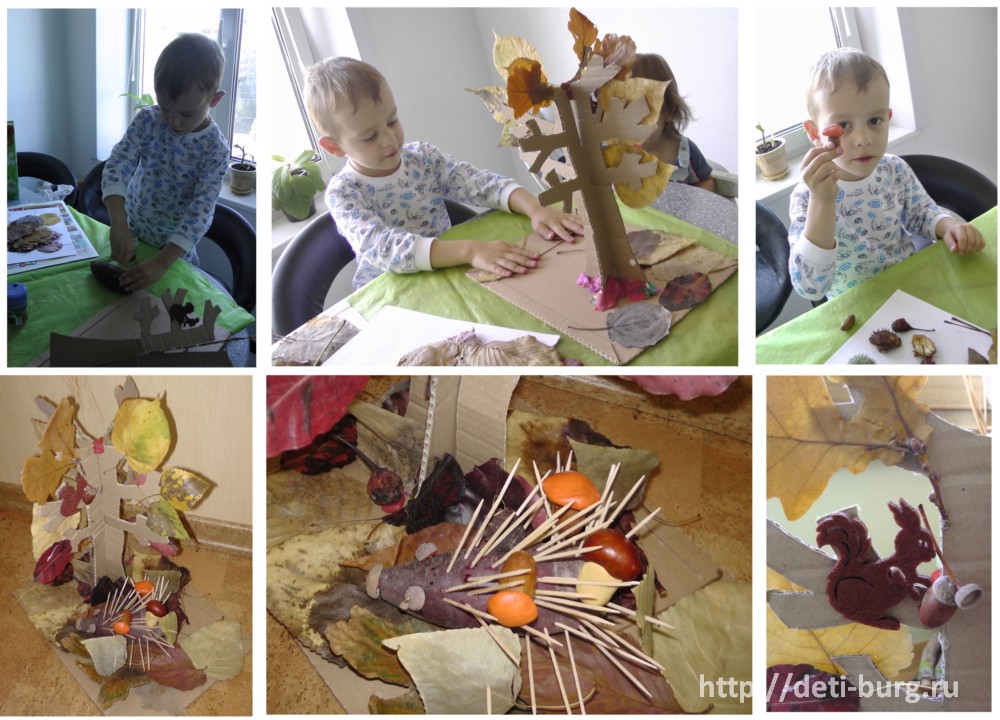 2. Сразу четыре поделки из природного материала от Максима и Маши Головицких