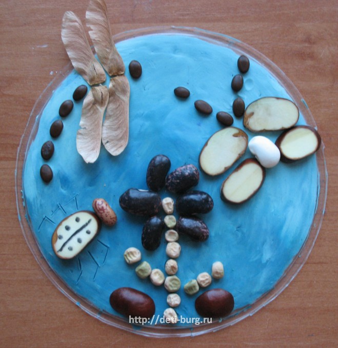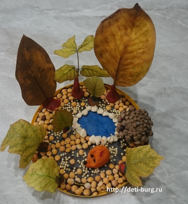27. Аппликация из крупы и листьев «Осеннее дерево» от Дзюба Марии (3,11 г.);