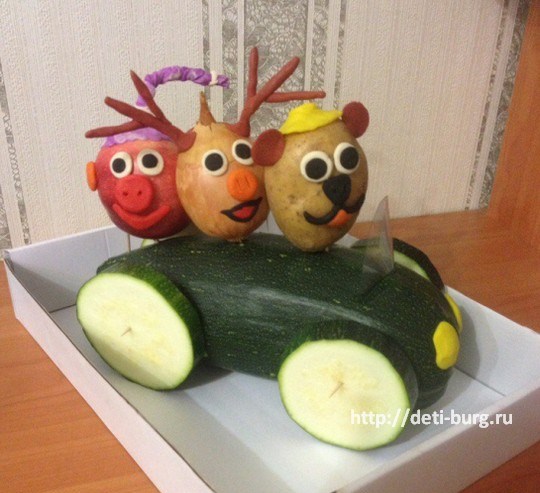 22. Поделка из овощей «Смешарики на машине» от Рыжкова Романа (6 лет)