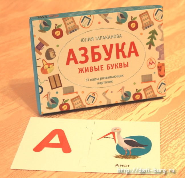 Здравствуйте, друзья! Я уже как-то писала о книгах для детей, которые только учатся читать. Сегодня хочу рассказать еще об одной новинке издательства «МИФ. Детство» — это развивающие карточки для изучения букв. Т.е. это азбука в виде парных карточек, которые соединяются между собой, как пазлы. На левой карточке изображена буква, а на правой – картинка. Причем картинки подобраны не просто по первой букве в слове, как в обычных азбуках и букварях. Картинки по своей форме напоминают саму букву, т.е. главный секрет азбуки в том, что она задействует ассоциативную память ребенка. (ещё…)