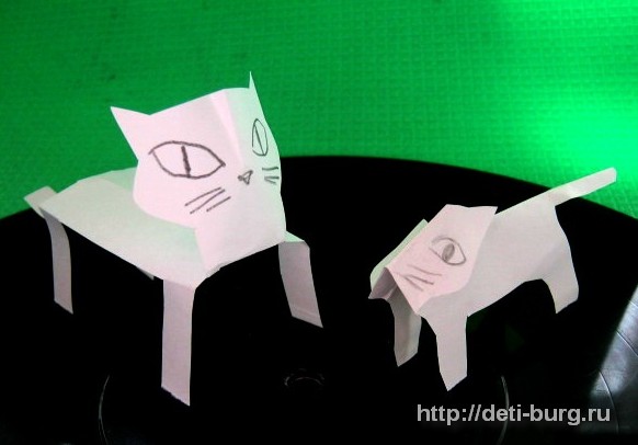ВСЁ! Такой простой и понятный способ детям очень нравится. Но у нас есть ещё один козырь. Когда дети уже освоили изготовление «двускатной кошечки» и немножко ею поиграли, на свет является вторая кошка: