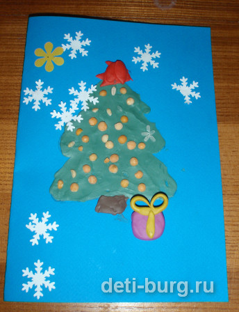 Первое знакомство с новым предметом состоялось, теперь пора прилеплять кусочки «со смыслом», например, изобразите божью коровку, а малышу предложите прилепить ей пятнышки, или нарядите новогоднюю елку игрушками, яблоню – яблоками, мухомор — пятнышками и т.д. в интернете можно найти специальные альбомы для таких занятий.